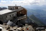 Totalna euforia dopadła mnie później, podczas monotonii schodzenia. Trwałem w niej jeszcze, gdy dotarliśmy do Vallota. Usiadłem tylko opierając głowę na rękach. Nawet mi się nie chciało z nikim gadać, nawet się nie uśmiechałem, ale czułem się w środku totalnie spełniony i szczęśliwy. Tyle miesięcy czytania, planowania, przygotowań, zakupów i nareszcie. Wątpiłem czy uda nam się tego dokonać. Szczególnie, gdy wiatr się nasilał i widoczność też się totalnie załamała. Weszła nas piątka, w sumie jakby nie było z dziewięciu początkowo chętnych osób i z sześciu w naszym zespole. Ogólnie przyjęło się, że Mont Blanc jest prostą górą do zdobycia. Już po przejściu całej tej drogi przyznam, że faktycznie jest to prosta góra, ale jednocześnie może być niebezpieczna i jednak potrafi zmęczyć. Czas podejścia na ten szczyt mnie zaskoczył. Nie sądziłem, że droga na górę zajmie nam (w prawdzie z przerwami) aż prawie siedem godzin. Nie wątpliwy minus to na pewno mgła, choć w drodze na dół, może 100 metrów poniżej szczytu na chwile rozwiało chmury i przez minutę widzieliśmy fragmenty naprawdę ładnego krajobrazu dookoła. Wystarczyło, żeby na dodatkowy dowód sfotografować grań szczytu, którą jeszcze przed chwilą wchodziliśmy. Plusem natomiast jest to, że na szczycie byliśmy sami. Podejście w ciężkich warunkach, niewątpliwie kosztowało, ale mieć dach Europy tylko dla siebie – bezcenne J.