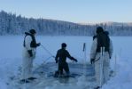 Przy wyjściu z wody pomagaliśmy sobie kijkami narciarskimi, wbijając je niczym czekan w lód przy równoczesnym ruchu nogami - jak w stylu dowolnym. Po tej szybkiej kąpieli czekała nas jeszcze nocka na świeżym powietrzu - Sleeping In “Lonely wolf". W wyznaczonym miejscu pozostawiony sam sobie, musiałem rozłożyć posłanie do spania i zjeść przydzieloną rację żywnościową. Notabene trzeba zawsze pamiętać, aby w podobnych warunkach dużo pić i dostarczać cały czas wysokoenergetyczny pokarm (dużo cukrów).