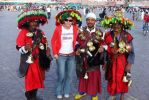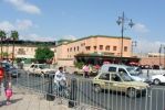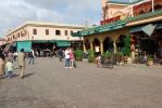 Tym razem postanowiliśmy skorzystać z oferty naszego hotelu, który za opłatą ( 20 euro - co oczywiście było zawyżoną sumą) wysłał taxówkę. Wyłowiliśmy z tłumu oczekujących naszego kierowcę, który okazał się być samym właścicielem hotelu i ruszyliśmy rozklekotanym busem na miejsce. Nasz hotel mieścił się w samym centrum starego miasta, 5 minut od słynnego Placu Jamma El Fna. Od razu poczuliśmy już znajomy zapach surowego mięsa i kanalizacji unoszący się w powietrzu. Dosyć drogi hotel, jak na warunki marokańskie, okazał się porażką. Pokój na parterze gdzie okna i drzwi wychodziły do holu bez dachu (typowy dom w Maroku), łazienka sprawiała wrażenie jakby nie była remontowana od wieków. Maroko - kraj arabski, głośniki na każdym rogu, które nawołują do modlitwy, tylko mężczyźni w barach, kobiety zakrywają włosy, a jednak widać duży wpływ Europy. Warto dodać, że niewiele osób mówi w języku angielskim, ponieważ dawno temu Maroko było kolonią francuską większość tubylców posługuje się właśnie tym językiem (i oczywiście arabskim oraz marokańskim).