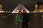 Do Paryża polecieliśmy z wrocławskiego lotniska im. Mikołaja Kopernika. Wylądowaliśmy na lotnisku Paris-Beauvais, gdzie lądują wszystkie samoloty tanich linii. Ponieważ lotnisko to znajduje się 84 km na północ od centrum Paryża, do celu naszej podróży musieliśmy dotrzeć autokarem, co w rzeczywistości zajęło nam mniej więcej tyle czasu co przelot (ok. 1,5 godz.). Ceny natomiast nie były już takie porównywalne. Samolot kosztował nas 100zł za osobę w dwie strony (Wizzair), natomiast autokar 30€. Tak na prawdę, to najwięcej pieniędzy wydaje się właśnie na transport, przy założeniu oczywiście, że śpimy u couchsurferów. Nasz gospodarz, student Sorbony, miał dojechać do Paryża tego samego dnia ok. 21:00, także będąc na miejscu już o 15:00 mieliśmy jeszcze sporo czasu na zwiedzanie. Jak zwykle po wyjściu za autokaru, nie wiedzieliśmy w którą stronę pójść, ale jak nie wiadomo gdzie iść to trzeba iść do metra. Dla zainteresowanych paryskie metro jest jedną z najstarszych działających na świecie kolei podziemnych (od 1900 roku) i liczy 16 linii o łącznej długości ponad 222km. W metrze spotkało nas rozczarowanie w postaci braku zniżek dla studentów. W tej sytuacji najbardziej opłacał się karnet 10 biletów za 11€. Dzięki mapom rozmieszczonym w metrze szybko udało nam się znaleźć odpowiednią dla nas linie. Wysiedliśmy na stacji Châtelet niedaleko katedry Notre Dame. Wyjście z podziemia i pierwszy kontakt z Paryżem znanym z filmów i książek. Katedra co prawda wydawała się mniejsza niż oczekiwaliśmy, no ale przecież nie wielkość się liczy (może z wyjątkiem Wieży Eiffla, ale o tym później). Następnie zaczęliśmy się błąkać po wyspie na której stoi katedra. Dlaczego błąkać? Starannie zaplanowana trasa wycieczki została we Wrocławiu. Na szczęście mieliśmy przewodnik i szybko okazało się, że w okolicy znajduje się Pont Neuf, najstarszy most w Paryżu. Następnie trafiliśmy do Centrum Pompidou, zobaczyliśmy z zewnątrz jak to wygląda, a wyglądało całkiem nieźle, nawet weszliśmy na chwilkę do środka, ale szybko znów wyszliśmy na zewnątrz. Być może to świadomość bogactwa Luwru nie pozwalała nam oglądać żadnych innych dzieł sztuki. Niedaleko Centrum zlokalizowaliśmy Les Halles, gdzie zobaczyliśmy małą dziewczynkę biegnącą za tatą z wielką bagietką, później była zamiana i tatuś biegł za córką. Gdy zapadł zmierzch wybraliśmy się na poszukiwanie Upiora z Luwru. Niestety nie spotkaliśmy go, ale przynajmniej była okazja na zrobieniu paru zdjęć ze słynna piramidą.