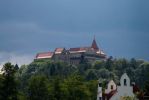 W drodze do Brna odbiliśmy na zamek Pernstejn (zdj.). Piękna gotycka budowla zachwyciła nas. Zwłaszcza, że wstęp na teren zamku był dosłownie symboliczny (10Kć). Niestety, nie trafiliśmy na godziny zwiedzania jego skarbów - sal i wnętrz. Musieliśmy nacieszyć oko tym, co dostępne. W sumie może to i dobrze, gdyż obojgu nam podobają się gotyckie mury a wnętrza są przebudowane w stylu barokowym. Posileni pięknem okolicy i obiadem pojechaliśmy do Brna. Niestety na miejscu okazało się, że pod zamkiem zostawiliśmy coś bardzo cennego dla nas - aparat. Cóż, ryzykować utratę bez sprawdzenia czy ktoś znalazł i gdzieś oddał to nie w naszym stylu, więc udaliśmy się ponownie na zamek. Podobno niektórzy ludzie mają szczęście (jeden typ ludzi). My je mieliśmy. Czeska rodzina do której przysiedliśmy się w czasie obiadu zauważyła naszą zgubę i oddała ją sprzedającym posiłek. Ufff co za ulga. I tym razem Czesi nas nie zawiedli. Ponownie jadąc do Brna poszukaliśmy kempingu, gdzie się rozgościliśmy na 2 noce. Gdzieś po drodze usłyszeliśmy historię, jak napadnięto na bankomat - złodzieje ukradli pieniądze RAZEM z bankomatem - przez co musieliśmy poszukać nowego źródełka gotówki. Popołudniem udaliśmy się na zwiedzenie okolicy kempingu a wieczorem samego Brna. Miasto mnie trochę rozczarowało, a może ja już byłam na tyle zmęczona przygodami ostatnich 24h, że jego piękno nie docierało do mnie w pełni. Następny dzień poświęciliśmy na zwiedzanie Moravskiego Krasu