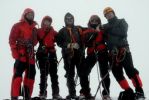 Krzysztof ze szczęścia dostał ataku śmiechu, położył się na śniegu i dobrą chwilę nie wstawał. Nawet wiatr się na chwilę uspokoił i zwolnił do 30km/h, Rafał starał się to wszystko filmować kamerą. Dziewczyny były bardziej zdziwione niż szczęśliwe, że to jest koniec i dalej nie idziemy, a ja też nie odczułem nawet jakiejś szczególnej euforii czy zadowolenia ze zdobycia długo oczekiwanej góry. Pamiętałem tylko żeby jak najszybciej zrobić wszystkie pomiary. Zrzucić ekran z GPSu ze współrzędnymi na dowód, jeśli baterie na zimnie wytrzymają. Zmierzyć ciśnienie, wiatr, temperaturę, zapisać wszystko, zrobić parę zdjęć całej ekipy i ze względu na warunki jak najszybciej schodzić na dół. Długopis zamarzł, ale jakoś udało mi się odcisnąć na papierze 571hPa odnotowanego ciśnienia. GPS na pierwszą triangulację znalazł sygnał z ośmiu satelit, wysoko na widnokręgu, więc wysokość obliczył mało dokładnie na 4827,4m n.p.m. Warunki nie były sprzyjające, więc nie chciało mi się czekać na lepszy sygnał, ważne, że pozycja była dobra. Aparat rzuciłem na plecak, na śniegu i ustawiłam na samowyzwalacz. 17 lipca 2010r. o godzinie 10:48 rano, jako jedna z trzech ekip tego dnia, zdobyliśmy dach Europy. Jako wyczyn to bardzo dużo, tylko widoczność nam niestety nie dopisała.