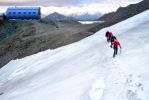 Zejście zajmuje nam więcej czasu niż wejście na górę, głównie dlatego, że prędkość całego zespołu wyznacza najwolniejsza osoba. W końcu, po prawie siedmiu godzinach od momentu stanięcia na szczycie wracamy do schronu. Jeszcze podczas zejścia na grani zaskoczyły nas opady śniegu, poniżej EJB był to już śnieg z deszczem a już przed samym schroniskiem Studlhutte pada intensywny deszcz. Zupełnie przemoczeni docieramy do namiotów, wyłączam stoper, mamy za sobą 12 godzin akcji. Teraz doceniam zimowy schron i piec z brykietami w środku, będzie gdzie się wysuszyć.