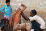 Tylko raz byliśmy zmuszeni do użycia siłowych argumentów w stosunku do niesfornej młodzieży (grupki nacjonalistów z Maharasztry), których ciężko było przekonać do współpracy. Na szczęście mieliśmy nieustraszoną i zaprawioną w bojach pilotkę, która spychała ich, jeden po drugim, tłukąc po głowie co bardziej krnąbrnych osobników. Z przerażeniem obserwowaliśmy tę scenę w obawie przed rozlewem krwi, ale w końcu przyszła nam z pomocą pociągowa policja hinduska. Jej interwencja do pewnego stopnia tylko przyniosła upragniony skutek; chłopcy zeszli z naszych miejscówek, ale mimo wolnej przestrzeni w sąsiednich wagonach, postanowili sobie za cel nadrzędny całonocne gnębienie białasów, baczne przyglądanie się naszej ekipie i atakowanie każdego wolnego skrawka terenu..