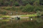 Śladem bursztynowych kupców ruszyłam ze Zbraslav i dalej brzegiem rzeki, przez Středočeský kraj. W krajobrazie uprzednio Pragi, jak i teraz jej okolic coraz więcej skał. Zbliżając się do Vrané nad Vltavou, gdzie znajduje się elektrownia wodna, zastanawiałam się dlaczego rybak na środku rzeki ma łódkę oznaczoną zieloną kulą. Podchodząc bliżej zauważyłam, że jest to przeprawa przez rzekę. Zasięgając “języka” co do trasy, podpowiedziano mi, by z Vrané nie iść ścieżką rowerową, bo prowadzi przez teren górski, tylko do miejscowości Měchenice, mostkiem, uwaga: kolejowo-rowerowo-pieszym. Jeszcze przed mostem dopytywałam przygodnego kierowcę, czy faktycznie pieszemu wolno tam iść. Na to miły starszy pan, że tak, ale trzeba uważać i rozglądać się na wszystkie strony, bo “maszynka tam jeździ”.