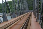 Podczas marszu przez most, nagle usłyszałam odgłos linek kolejowych, a po chwili gwizd samej kolejki i na zakręcie widać już było wagoniki. Więc ja, strachliwa kobiecina, stanęłam jak najbliżej barierki mostu. Byłoby rewelacyjne zdjęcie kolejki, ale stojąc prawie na baczność, na drżącym moście, gdzie poniżej rzeka, nie odważyłam się wyciągnąć aparatu, a co dopiero zrobić fotkę. Uff, torami kolejowymi, po śliskich kamieniach, bo zaczęło padać, dotarłam do stacji Mĕchenice, gdzie w przydrożnej kafejce odsapnęłam przy kawie.