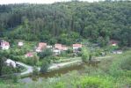Wytyczając trasę, aby uatrakcyjnić sobie marszrutę, starałam się wybierać szlaki turystyczne, czyli ścieżki rowerowe, przyrodnicze czy też punkty widokowe. W Davle, po raz któryś pytam napotkaną osobę, by upewnić się co do trasy, a ta wskazuje ścieżkę i schodkami pod górkę. Ale albo ja coś źle spytałam, albo babka źle coś zrozumiała, po prostu - nie ten kierunek, bo rzeki nie widać, i raz w górę, raz w dół. W takim momencie przydałby się pilot, może na rowerze, oczywiście z zapasem wody, który sprawdzałby czy dalej iść zaplanowaną trasą, czy ją zmienić. Oraz informowałby mnie czy w miejscu postojowym jest normalny nocleg. Lecz nie stać mnie na takie fanaberie. Wreszcie ktoś objaśnia mi, jak dojść nad brzeg rzeki Sázava, gdzie z wysoka widać Pikovice. A potem z miasteczka, spacerkiem w kierunku Hradištko, i po 25 kilometrach trasy, oraz posileniu się pyszną smażoną rybą, udało mi się ulokować na nocleg.