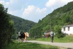 Rozbiliśmy obóz na łące obok rzeki (wcześniej Kuba pytał tubylców o pole namiotowe- to oni poradzili nam spanie na dziko w tym miejscu). Wykąpaliśmy się, rozbiliśmy namioty i zaczynaliśmy gotować kolację, gdy przez rzekę przejechał powóz konny (!), a woźnica orzekł, że to jego łąka i musimy mu zapłacić. Nie chciał dużo, jego żona krzyknęła jeszcze za nami, że mamy sobie rozpalić ognisko, żeby nie przyszły wilki… Przygoda!