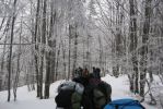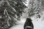Kolejny poranek przynosi załamanie pogody, zaczyna niesamowicie wiać i sypać śnieg (a my wciąż nie mamy rakiet!). Jesteśmy twardzi i się nie poddajemy, ale wbrew pozorom wędruje się naprawdę dobrze. Kominiarka ratuje twarz, szczęściarze ze stuptutami przecierają szlak i wszyscy sobie radzimy. Ten dzień przynosi najbardziej mroczne widoki do tej pory, śnieg zacina, w lesie jest ciemno, bardzo klimatyczne wędrowanie.