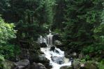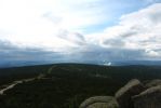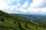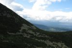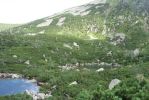Pogoda była dokuczająca, zmienna (z przewagą ulewy), zaliczyliśmy też gradobicie na betonowej trasie na Szrenicę. W momencie, gdy wychodziliśmy na szlak do Śnieżnych Kotłów, odebrałam telefon z ostrzeżeniem przed gwałtownymi burzami. Było dość wcześnie, więc zmyleni czasami podanymi na schematycznej mapce, wyruszyliśmy w drogę- byliśmy pewni, że szybko wrócimy. Całą drogę bałam się przeraźliwie, wyobrażając sobie spadające z gór kamienie porozsypywane ponad szlakiem i pioruny odbijające się od skał. Na szczęście moja wyobraźnia przesadzała, mając za pożywkę stały półmrok w Śnieżnych Kotłach oraz pustki na szlaku. Moim celem wtedy było jak najszybsze dotarcie do lasu, aby schronić się przed ewentualną burzą- w momencie kulminacyjnym, kiedy na niebie pojawiła się okropna, granatowa, potężna chmura- na szlaku pojawił się ptaszek, który aż do granicy lasu skakał przed nami, zatrzymując się i czekając na nas. Scena niczym z Disneya ;)