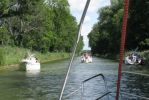 Tegoroczny wyjazd na Mazury był dla mnie szczególny. To ze względu na mojego synka, który był "pod żaglami" po raz pierwszy. Trochę się obawiałem, czy nie będzie chciał wracać do domu, itp. Na szczęście podobało mu się bardzo i chyba się żeglarstwem "zaraził". Dodatkowe atrakcje w postaci aquaparku w hotelu "Gołębiewski" w Mikołajkach tylko wzmocniły jego chęć powrotu na Mazury w kolejnych latach. Atmosferę tworzą także zespoły szantowe, często występujące w marinach, pyszne rybki i doskonała zabawa. Będąc w miejscach odosobnionych dobrze zabrać ze sobą gitarę i śpiewniki. Mam to szczęście, że na Mazury zawsze wypływam z moimi znajomymi - łącznie tworzymy dość liczną flotyllę, w tym roku było nas w sumie 8 jachtów, z czego 4-5 trzymały się razem. Nie było więc mowy o znudzeniu się sobie nawzajem. Polecam odwiedzić marinę w Popielnie, gdzie jest siedziba PAN (hodowla konika polskiego) i podają wspaniałe ryby (nieco głębiej po prawej stronie- takiego lina w sosie śmietankowo- koperkowym jeszcze nigdy nie jadłem- pycha).